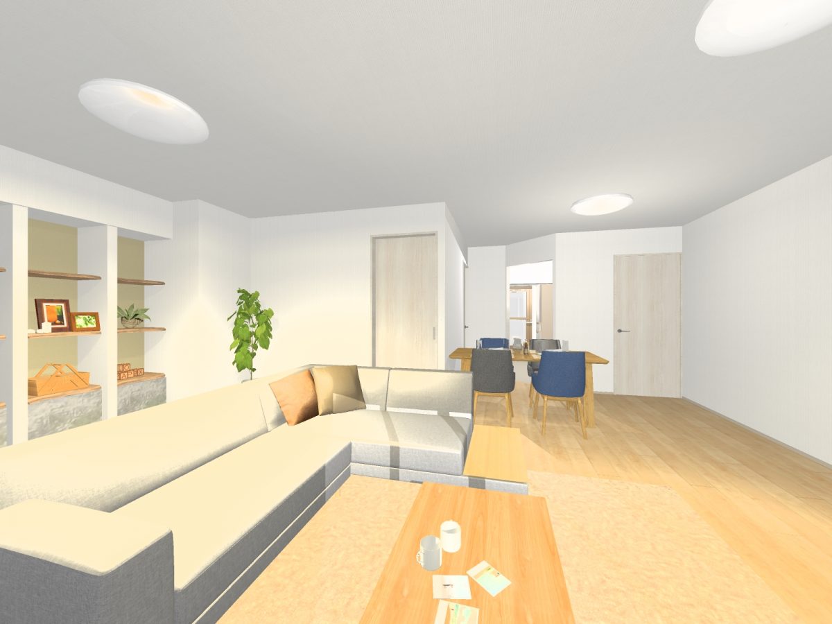 ③ 洋室をつなげてLD拡大 + おしゃれな飾り棚を造作