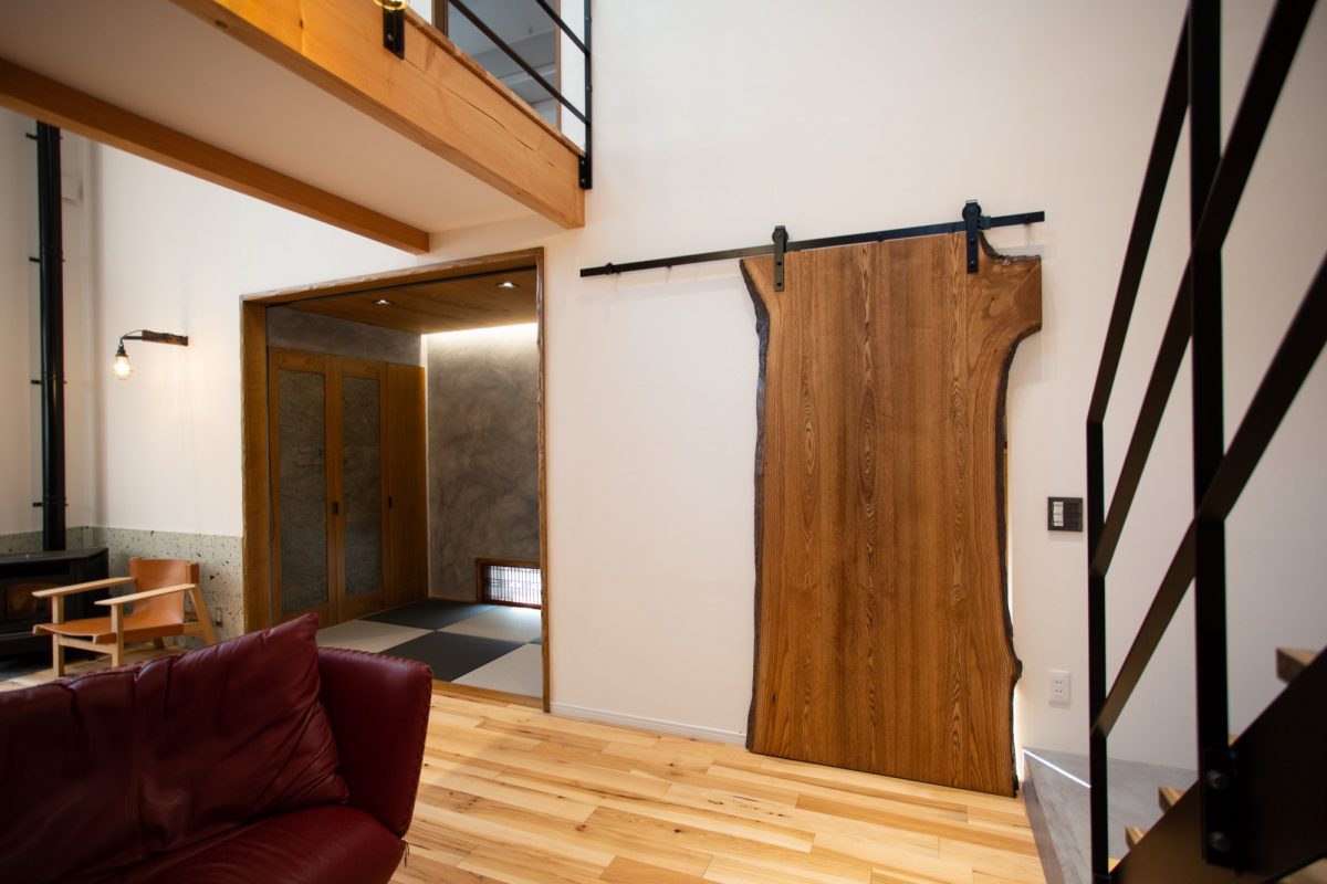 一目で印象に残るのは、一枚板を使った引き戸の存在感。実は自社造作により、「重すぎる」というデメリットを解消しています(詳細はお問い合わせください)。